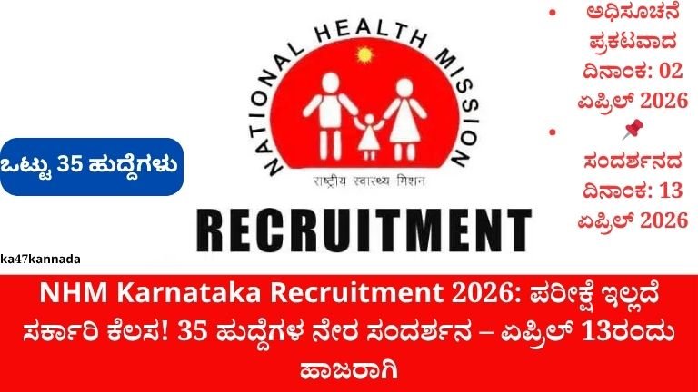 NHM Karnataka Recruitment 2026: ಪರೀಕ್ಷೆ ಇಲ್ಲದೆ ಸರ್ಕಾರಿ ಕೆಲಸ! 35 ಹುದ್ದೆಗಳ ನೇರ ಸಂದರ್ಶನ – ಏಪ್ರಿಲ್ 13ರಂದು ಹಾಜರಾಗಿ