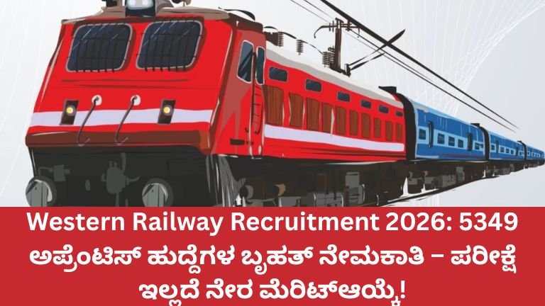 Western Railway Recruitment 2026: 5349 ಅಪ್ರೆಂಟಿಸ್ ಹುದ್ದೆಗಳ ಬೃಹತ್ ನೇಮಕಾತಿ – ಪರೀಕ್ಷೆ ಇಲ್ಲದೆ ನೇರ ಮೆರಿಟ್ಆಯ್ಕೆ! ಭಾರತೀಯ ರೈಲ್ವೆ ಉದ್ಯೋಗವೆಂದರೆ ಯುವಕರಿಗೆ ಭದ್ರ ಭವಿಷ್ಯದ …