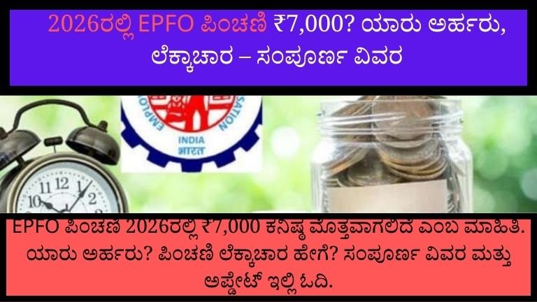 2026ರಲ್ಲಿ EPFO ಪಿಂಚಣಿ ₹7,000? ಯಾರು ಅರ್ಹರು, ಹೇಗೆ ಲೆಕ್ಕಾಚಾರ – ಸಂಪೂರ್ಣ ವಿವರ 2026ರಿಂದ EPFO ಕನಿಷ್ಠ ಪಿಂಚಣಿ ₹7,000 ಆಗಬಹುದು ಎಂಬ ಸುದ್ದಿ ದೇಶಾದ್ಯಂತ …