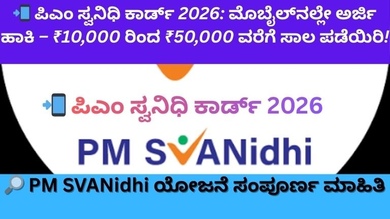 📲 ಪಿಎಂ ಸ್ವನಿಧಿ ಕಾರ್ಡ್ 2026: ಮೊಬೈಲ್ನಲ್ಲೇ ಅರ್ಜಿ ಹಾಕಿ – ₹10,000 ರಿಂದ ₹50,000 ವರೆಗೆ ಸಾಲ ಪಡೆಯಿರಿ! ನಗರ ಪ್ರದೇಶದ ಬೀದಿ ಬದಿ ವ್ಯಾಪಾರಿಗಳಿಗೆ …